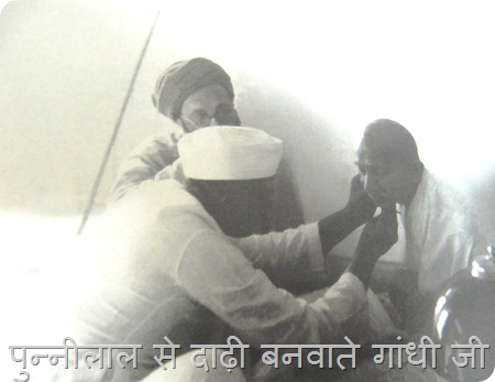 उन दिनों गांधी जी इलाहाबाद में थे। आनंद भवन में ठहरे थे। अवसर था, कमला नेहरू स्मारक औषधालय का शिलान्यास का। बात 23 नवम्बर 1939 की है। गांधी जी को दाढ़ी बनवाने के लिए एक नाई की ज़रूरत थी। जवाहरलाल नेहरू जी के निजी सचिव उपाध्याय जी ने एक नाई को बुलवाया। उस नाई का नाम पुन्नीलाल था। उपाध्याय जी ने उन्हें गांधी जी के पास जाने के पहले खादी के कपड़े पहनने के लिए दिया। जल्दबाजी में किए गए इस काम के कारण कपड़े पुन्नीलाल को फिट नहीं आ रहे थे, फिर भी उन्हें पहनकर पुन्नीलाल खाफ़ी ख़ुश था।